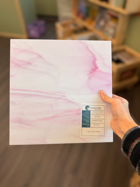 Oceanside Glass White/Pink Wispy