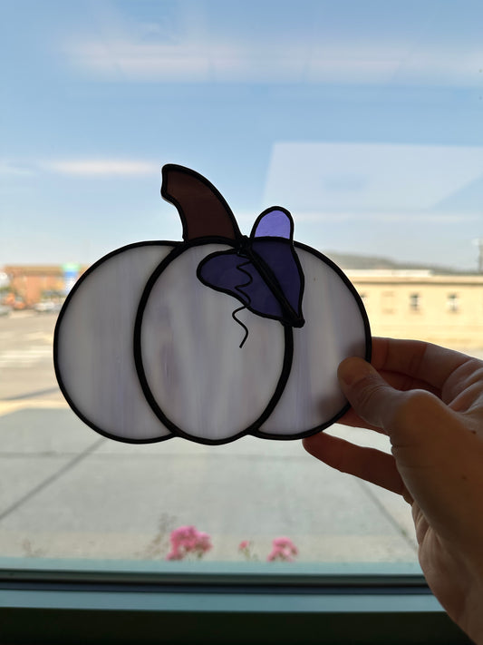 Stained Glass Pumpkin Sun Catcher- Purple (6.5"x6")
