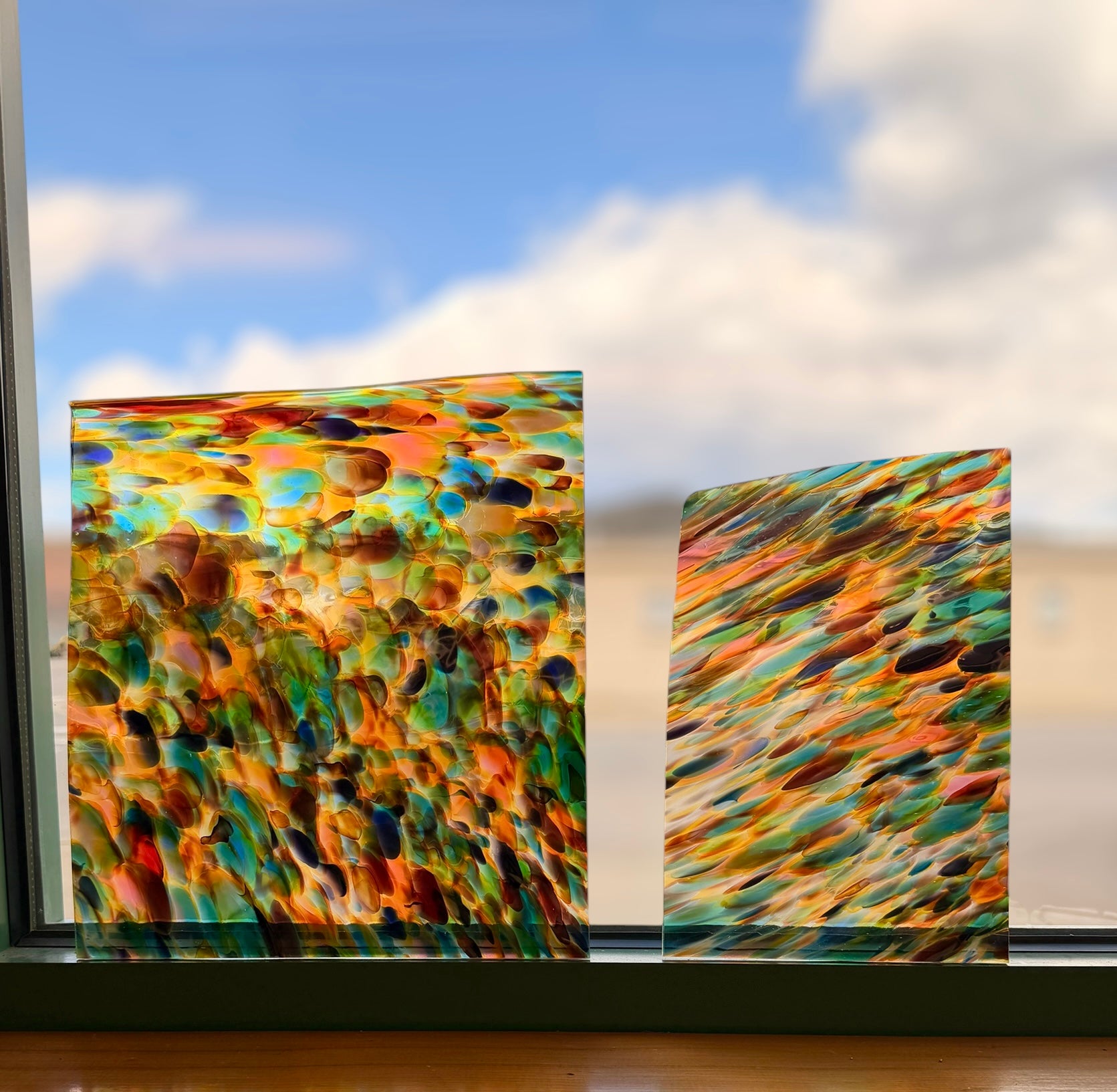 Multicolor puffs. Each piece is its own piece of art. No two sheets are alike. Please review the pictures in detail before selecting your size.
