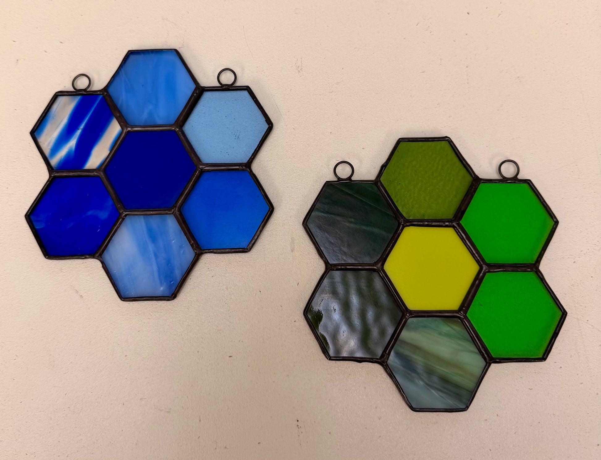 Looking for a fun and approachable intro to stained glass? In this fast-paced 2.5 hour intro class, you'll learn the fundamentals of stained glass copper foil method - from cutting and foiling to soldering - while creating a one of a kind hexi flower (approx. 5"x5.5").