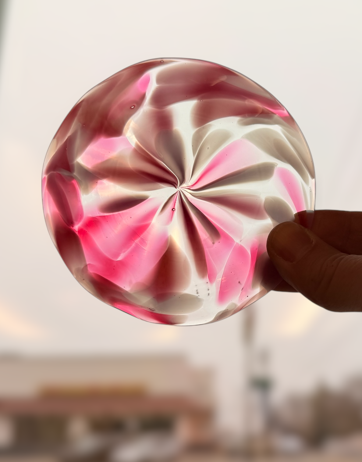 Pink/White/Clear Optic Hand Spun Rondel 95mm